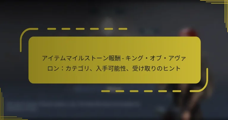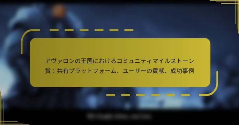 『キング・オブ・アヴァロン』のコミュニティマイルストーン報酬は、共同の目標が達成された際にプレイヤーに与えられる報酬であり、ゲームコミュニティ内での協力とエンゲージメントを促進します。プレイヤーはさまざまなプラットフォームで自分の成果を共有でき、相互作用を高め、進捗を示すことができます。ゲームプレイの洞察を提供し、イベントに参加することで、ユーザーは活気あるコミュニティを育む手助けをし、自分の努力に対する認識と報酬を享受します。 『キング・オブ・アヴァロン』のコミュニティマイルストーン報酬とは? 『キング・オブ・アヴァロン』のコミュニティマイルストーン報酬は、コミュニティが共同で特定の目標を達成した際にプレイヤーに与えられる報酬です。これらの報酬は、プレイヤー間のエンゲージメントと協力を促進し、全体的なゲーム体験を向上させます。 コミュニティマイルストーン報酬の定義と重要性 コミュニティマイルストーン報酬は、プレイヤーがリソース収集やイベント参加などの設定された目標に向かって協力するシステムを表しています。その重要性は、プレイヤーが共有の目標に貢献することで、チームワークと帰属意識を促進することにあります。 これらの報酬は、参加を奨励するだけでなく、プレイヤー同士のコミュニケーションや戦略を共に考えることを促進し、コミュニティを強化します。マイルストーンが達成されると、プレイヤーはゲームへのつながりを強化する達成感を味わいます。 コミュニティマイルストーンに関連する報酬の種類 コミュニティマイルストーンは、ゲームプレイやプレイヤーの満足度を向上させるさまざまな種類の報酬につながります。一般的な報酬には、ゲーム内通貨、ユニークなアイテム、特別なブーストが含まれます。 ゲーム内通貨:プレイヤーは、開発を助けるために金やリソースを受け取ることがあります。 ユニークなアイテム:排他的な装備やスキンが授与され、視覚的な違いとゲームプレイ上の利点を提供します。 特別なブースト:リソース生産や部隊の強さに対する一時的な強化が付与され、プレイヤーがより迅速に進行できるようになります。 コミュニティマイルストーン報酬を得るための基準 コミュニティマイルストーン報酬を得るためには、プレイヤーは指定されたイベントに積極的に参加し、全体の目標に貢献する必要があります。これには、リソースの収集、クエストの完了、または戦闘への参加が含まれる場合があります。 各マイルストーンには通常、達成すべき特定の目標があり、たとえば収集されたリソースの数や参加するプレイヤーの割合などがあります。プレイヤーが多く貢献するほど、コミュニティがこれらの目標を達成し、報酬を解除する可能性が高まります。 ゲームプレイに対するコミュニティマイルストーンの影響 コミュニティマイルストーンは、プレイヤーが協力して作業する意欲を感じる協力的な環境を作ることで、ゲームプレイを大幅に向上させます。この共同の努力は、より活気に満ちたアクティブなコミュニティにつながります。 プレイヤーがマイルストーンを達成すると、士気やエンゲージメントが向上し、プレイ時間やゲームへの投資が増えることがあります。受け取る報酬も、プレイヤーがより早く進行するのを助け、ゲームをより楽しめるものにします。 コミュニティマイルストーン報酬の例 『キング・オブ・アヴァロン』では、コミュニティマイルストーン報酬のいくつかの注目すべき例が授与されており、利用可能な報酬の多様性を示しています。たとえば、コミュニティが共同で設定された数のリソースを集めた後、プレイヤーはかなりの金額を受け取ることがあります。 別の例として、マイルストーンの達成を通じてのみ入手可能な部隊や建物のユニークなスキンが含まれ、プレイヤーに自分の体験をパーソナライズする機会を提供します。これらの例は、コミュニティマイルストーンがゲームプレイを向上させ、コミュニティの精神を育む貴重な報酬につながることを示しています。 プレイヤーは『キング・オブ・アヴァロン』でどのように成果を共有できますか? プレイヤーは、さまざまなプラットフォームやソーシャルメディアチャンネルを通じて『キング・オブ・アヴァロン』での成果を共有でき、コミュニティのエンゲージメントを高め、進捗を示すことができます。ゲーム内の機能や人気の共有プラットフォームを利用することで、プレイヤーは効果的にマイルストーンを伝え、他のゲーマーとつながることができます。 成果を共有するための人気プラットフォーム プレイヤーが『キング・オブ・アヴァロン』の成果を共有するために広く使用しているプラットフォームがいくつかあります。これらのプラットフォームは相互作用を促進し、プレイヤーが成功をより広いオーディエンスに示すことを可能にします。 Facebook:友人やゲ