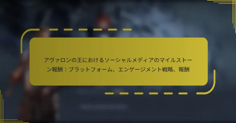 「キング・オブ・アヴァロン」のソーシャルメディアマイルストーン報酬は、さまざまなプラットフォームで特定のエンゲージメント目標を達成したプレイヤーに対して与えられ、コミュニティの関与と積極的な参加を促進します。Facebook、Twitter、Instagramなどのプラットフォームにアカウントを接続することで、プレイヤーは独自のゲーム内特典をアンロックし、ゲーム体験を向上させることができます。魅力的なコンテンツを作成したり、コミュニティと交流したりするなどのエンゲージメント戦略は、可視性を高め、ゲーム内での帰属意識を強化します。 「キング・オブ・アヴァロン」におけるソーシャルメディアマイルストーン報酬とは? 「キング・オブ・アヴァロン」におけるソーシャルメディアマイルストーン報酬は、さまざまなソーシャルメディアプラットフォームで特定のエンゲージメント目標を達成したプレイヤーに与えられる報酬です。これらの報酬は、コミュニティの関与を高め、プレイヤーがゲームのエコシステムに積極的に参加することを促すことを目的としています。 マイルストーン報酬の定義と目的 マイルストーン報酬は、「キング・オブ・アヴァロン」に関連するソーシャルメディアでの「いいね」や「シェア」、「コメント」などの特定の基準に達したプレイヤーに提供されるインセンティブです。主な目的は、活気あるコミュニティを育成し、プレイヤーがゲームについて広めることを促すことです。 これらの報酬には、ゲーム内通貨、独占アイテム、またはゲームプレイ体験を向上させる特別なボーナスが含まれることがあります。プレイヤーのソーシャルメディアでのエンゲージメントに対して報酬を与えることで、ゲーム開発者はプレイヤー間の帰属意識と忠誠心を育てることを目指しています。 利用可能なマイルストーンの種類 マイルストーンは、必要なエンゲージメントのレベルによって大きく異なることがあります。一般的な種類には以下が含まれます: フォロワーマイルストーン:ゲーム関連のソーシャルメディアアカウントで特定のフォロワー数に達した際の報酬。 エンゲージメントマイルストーン:投稿に対する一定数の「いいね」や「シェア」を達成した際の報酬。 イベント参加:ソーシャルメディアイベントやチャレンジに参加した際の報酬。 各タイプのマイルストーンは、異なる形のインタラクションを促すように設計されており、より活発なプレイヤーコミュニティを構築するのに役立ちます。 マイルストーン報酬がゲームプレイを向上させる方法 マイルストーン報酬は、プレイヤーにゲーム内体験を向上させる貴重な報酬を提供することで、ゲームプレイを向上させます。たとえば、独占アイテムやボーナスを受け取ることで、プレイヤーはより早く進行したり、競争上の優位性を得たりすることができます。 さらに、これらの報酬は、プレイヤーがコミュニティイベントに参加したり、他のプレイヤーと協力したりするなど、ゲームのさまざまな側面を探求する動機付けにもなります。これにより、個々のゲームプレイが豊かになるだけでなく、全体的なコミュニティも強化されます。 マイルストーンを通じたコミュニティの関与 マイルストーン報酬を通じてコミュニティの関与が大幅に向上し、プレイヤー同士が互いに交流し、成果を共有することが促されます。このインタラクションは、友情を深め、より活気のあるゲーム環境を生み出すことにつながります。 ソーシャルメディア活動を促進することで、ゲーム開発者はプレイヤーがつながり、戦略を共有し、共にマイルストーンを祝う機会を創出します。このコミュニティ意識は、プレイヤーの定着率と満足度を向上させることができます。 マイルストーン報酬に関する一般的な誤解 一般的な誤解の一つは、マイルストーン報酬はトッププレイヤーやインフルエンサーのためだけのものであるということです。実際には、これらの報酬はすべてのプレイヤーがアクセスできるように設計されており、スキルレベルに関係なく参加を促します。 もう一つの誤解は、ソーシャルメディアでのエンゲージメントが時間がかかるか複雑であるということです。ほとんどのマイルストーンは、投稿に「いいね」や「シェア」をするなどの簡単なアクションを通じて達成できるため、プレイヤーが参加して報酬を得るのが容易です。 「キング・オブ・アヴァロン」でマイルストーン報酬をサポートするソーシャルメディアプラットフォームはどれですか? 「キング・オブ・アヴァロン」は、プレイヤーのエンゲージメントと報酬を高めるために、さまざまなソーシャルメディアプラットフォームをサポートしています。プレイヤーは、Facebook、Twitter、Instagramなどのプラットフォームにアカウントを接続して、独自のゲーム内特典をアンロックできます。 サポートされているプラットフォームの概要 「キング・オブ・アヴァ