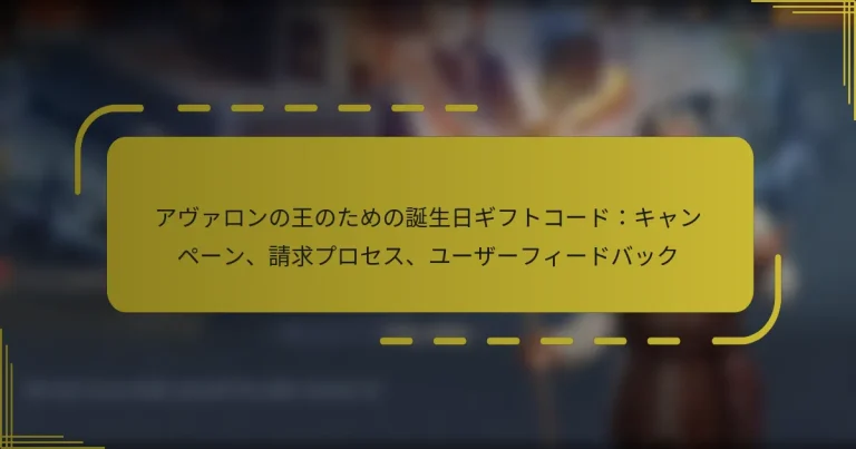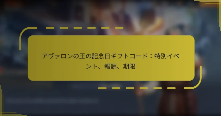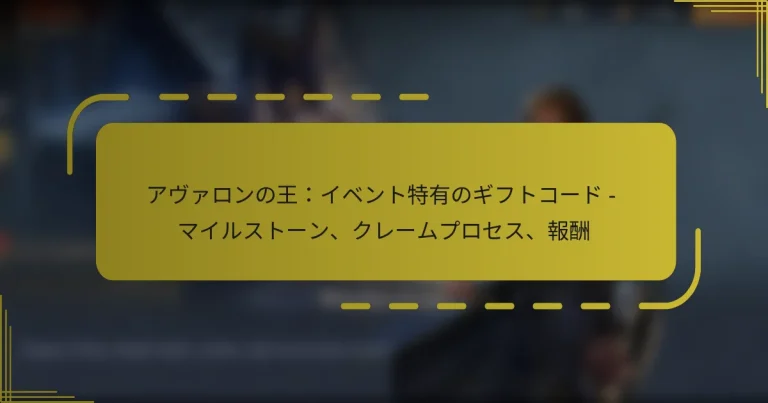 『キング・オブ・アヴァロン』のイベント特有のギフトコードは、プレイヤーにさまざまなゲーム内報酬を通じてゲームプレイを向上させるエキサイティングな機会を提供します。これらのコードは通常、特別なイベント中にリリースされ、ゲーム内の特定のマイルストーンを達成することで引き換えられます。報酬を受け取るには、プレイヤーはゲームの指定されたセクションにコードを入力するだけで、貴重なボーナスを逃さないようにします。 『キング・オブ・アヴァロン』のイベント特有のギフトコードとは? 『キング・オブ・アヴァロン』のイベント特有のギフトコードは、プレイヤーがさまざまなゲーム内報酬と引き換えられるプロモーションコードです。これらのコードは通常、ユーザーのエンゲージメントを高め、全体的なゲームプレイ体験を向上させるために特別なイベント中にリリースされます。 ギフトコードの定義と目的 ギフトコードは、プレイヤーが報酬を受け取るために入力できるゲーム開発者から提供されるユニークな英数字の文字列です。これらのコードの主な目的は、イベント中のプレイヤーの参加を促進し、忠実なプレイヤーにゲームプレイを助けるボーナスを提供することです。 これらのコードは、リソース、アイテム、または特別なキャラクターなど、さまざまな報酬をアンロックすることができ、プレイヤーのゲーム内での能力を大幅に向上させることができます。ギフトコードを使用することで、プレイヤーは通常、かなりの時間や労力をかけなければ達成できない利点を得ることができます。 イベント特有のギフトコードの種類 リソースコード:ゲーム内通貨や素材を提供します。 アイテムコード:特別なアイテムや装備をアンロックします。 キャラクターコード:ユニークなキャラクターやアップグレードへのアクセスを付与します。 イベントコード:特定のイベントに限定され、テーマに沿った報酬を提供します。 各タイプのギフトコードは異なる目的を持ち、ゲームプレイのさまざまな側面に対応しています。リソースコードは、建設やアップグレードに必要な重要な素材を提供するため、最も人気があります。アイテムコードは、プレイヤーが戦略を向上させるためのユニークなツールを提供し、キャラクターコードは新しいゲームプレイのダイナミクスを導入することができます。 ギフトコードの一般的な別名 プロモコード 引き換えコード 報酬コード イベントコード プレイヤーはギフトコードに対して異なる用語に出会うことがありますが、すべて同じ概念、すなわちゲーム内の利益を提供する引き換え可能なコードを指しています。これらの別名を理解することで、プレイヤーはコードをより効果的に見つけて利用できるようになります。特にプロモーションイベント中に役立ちます。 ギフトコードがゲームプレイを向上させる方法 ギフトコードは、プレイヤーに貴重なリソースやアイテムへの即時アクセスを提供することでゲームプレイを向上させます。これにより、プレイヤーは通常の時間制約なしに、より楽しい体験をし、迅速に進行し、新しい戦略を探求できるようになります。 さらに、ギフトコードを発見し、引き換える興奮はプレイヤーのエンゲージメントを高めることができます。プレイヤーは報酬を受け取ることで達成感やモチベーションを感じることが多く、これがイベントへの参加や全体的なゲームの長寿につながることがあります。 ギフトコードを使用するための資格基準 ギフトコードを使用するには、プレイヤーは通常、アクティブなアカウントを持ち、指定されたイベントの期間内にいる必要があります。一部のコードには、プレイヤーのレベルやゲームバージョンに基づく制限がある場合があるため、引き換えを試みる前に詳細を確認することが重要です。 プレイヤーはまた、特定のコードには使用回数の制限や有効期限があることに注意する必要があります。これらの要素を追跡することで、プレイヤーは利用可能なギフトコードからの利益を最大化し、報酬を逃すことを避けることができます。 ギフトコードをアンロックするために達成すべきマイルストーンは何ですか? 『キング・オブ・アヴァロン』でギフトコードをアンロックするには、さまざまなゲーム内イベントの一部である特定のマイルストーンを達成する必要があります。これらのマイルストーンを達成するには、通常、設定された期間内に特定のタスクを実行する必要があり、貴重な報酬につながることがあります。 マイルストーンイベントの概要 『キング・オブ・アヴァロン』のマイルストーンイベントは、プレイヤーの参加と成果に報酬を与える構造化されたチャレンジです。これらのイベントは通常、ゲームのアップデート、季節の祝賀、または特別なプロモーションに合わせて行われます。プレイヤーは、戦闘、リソース収集、または建物のアップグレードに焦