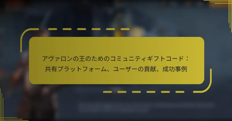 「キング・オブ・アヴァロン」のコミュニティギフトコードは、プレイヤーが共有し、ゲーム内報酬と引き換えられる貴重なプロモーションコードであり、ゲーム体験を大幅に向上させます。さまざまなプラットフォームがこれらのコードの共有を促進し、ユーザーの貢献を促し、プレイヤー間のコミュニティ意識を育んでいます。協力しリソースを共有することで、プレイヤーはより迅速に進行し、ゲームを最大限に楽しむことができます。 キング・オブ・アヴァロンのコミュニティギフトコードとは? キング・オブ・アヴァロンのコミュニティギフトコードは、プレイヤーが共有し、ゲーム内報酬と引き換えられるプロモーションコードです。これらのコードは貴重なリソースを提供し、プレイヤーがゲーム内でより迅速に進行できるようにすることで、ゲーム体験を向上させます。 ギフトコードの定義と目的 ギフトコードは、プレイヤーがゲームに入力してさまざまな報酬を受け取るための英数字の文字列です。これらのコードの主な目的は、コミュニティの関与を促進し、プレイヤーにイベントやプロモーションに参加するインセンティブを提供することです。 これらのコードは、金、部隊、または特別なアイテムなどのリソースをアンロックすることができ、新規プレイヤーと経験豊富なプレイヤーの両方にとって貴重な資産となります。これらのコードを共有することで、プレイヤーは互いにゲームプレイを向上させ、全体的なコミュニティを強化することができます。 利用可能なギフトコードの種類 キング・オブ・アヴァロンには、異なる報酬を提供するいくつかの種類のギフトコードがあります。一般的な種類には以下が含まれます: イベントコード:特別なイベントやプロモーション中にリリースされ、期間限定の報酬を提供します。 コミュニティコード:フォーラムやソーシャルメディアでプレイヤーによって共有され、一般的なリソースを提供することが多いです。 開発者コード:ゲーム開発者によってプロモーション目的で発行され、新しいアップデートに関連していることもあります。 各タイプのコードは、提供される報酬が異なり、ゲーム内通貨の少額からリソースの大幅な増加までさまざまです。 ギフトコードがゲームプレイを向上させる方法 ギフトコードは、プレイヤーに進行を加速させるための重要なリソースを提供することで、ゲームプレイを大幅に向上させます。たとえば、追加の金や部隊を受け取ることで、プレイヤーはより強力な軍隊や防御施設を迅速に構築することができます。 さらに、これらのコードはプレイヤー間のコミュニティ意識を生み出し、コードを共有することで協力とサポートを促進します。プレイヤーはしばしばギフトコードと共に戦略やヒントを共有し、全体的なゲーム体験を豊かにします。 有効期限と制限 ほとんどのギフトコードには有効期限があり、特定の期間内に引き換えなければなりません。通常、これらのコードはイベントやプロモーションに応じて数日から数週間有効です。 さらに、一部のコードには引き換え回数の制限がある場合や、新規プレイヤーのみが利用できる場合があります。各コードに関連する特定の条件を確認して、最大限の利益を得ることが重要です。 ギフトコードの引き換え方法 キング・オブ・アヴァロンでギフトコードを引き換えるには、プレイヤーは簡単な手順に従う必要があります。まず、ゲームを開き、設定またはアカウントセクションに移動し、通常はコードを引き換えるオプションがあります。 ギフトコードを正確に入力し、誤字がないことを確認します。送信後、プレイヤーはすぐにまたは短時間で報酬を受け取るはずです。時間制限のあるオファーを逃さないように、コードは迅速に引き換えることをお勧めします。 ギフトコードの共有を促進するプラットフォームはどれですか? キング・オブ・アヴァロンのプレイヤーがギフトコードを効果的に共有できるプラットフォームはいくつかあります。これらのプラットフォームはコミュニティの関与を促進し、ユーザーが共有リソースから貢献し、利益を得ることを可能にし、ゲーム体験を向上させます。 キング・オブ・アヴァロンプレイヤー向けの人気フォーラム Redditは、キング・オブ・アヴァロンのプレイヤーが戦略を議論し、ギフトコードを共有するために集まる主要なプラットフォームです。ゲーム専用のサブレディットでは、コード共有専用のスレッドがしばしば掲載されており、ユーザーがコードを見つけて貢献するのが容易です。 もう一つの人気フォーラムは、公式のキング・オブ・アヴァロンコミュニティフォーラムで、プレイヤーがコードを投稿し交換できます。このプラットフォームはコードの共有だけでなく、ゲームプレイやヒントについての議論も促進します。 ギフトコード専用のソーシャルメディアグループ Facebookグループは、キング・