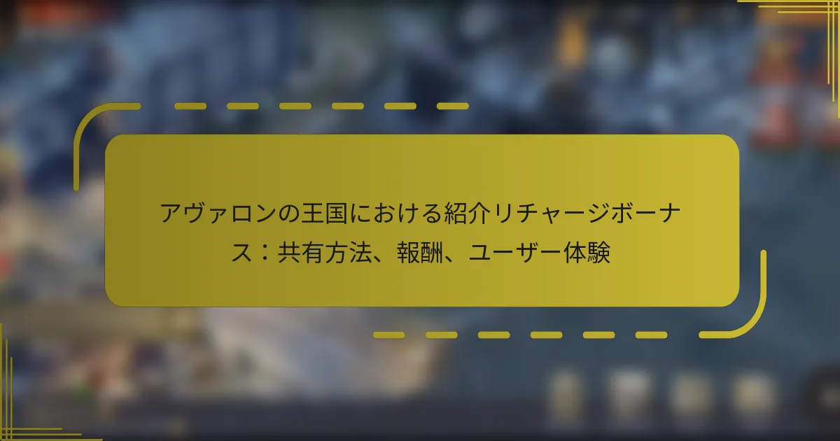 アヴァロンの王国における紹介リチャージボーナス:共有方法、報酬、ユーザー体験